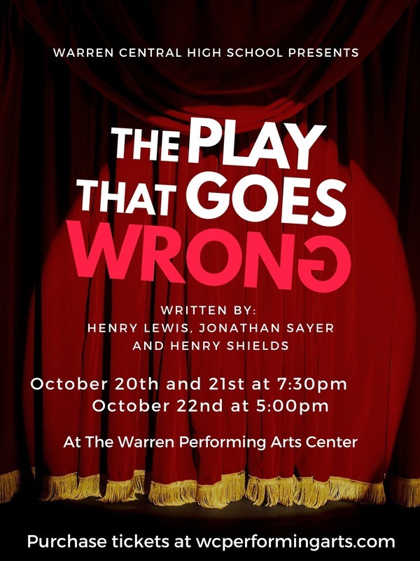 When we return from fall break, our Warren Central High School Performing Arts program will be performing their fall play, The Play That Goes Wrong, Thursday, October 20th, Friday, October 21st, and Saturday, October 22nd, at our Warren Performing Arts Center. Tickets can be purchased at wcperformingarts.com.